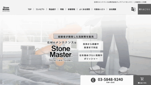 質疑応答形式でのご質問への回答をウェブサイト上に掲載するほか、電話でのお問い合わせにも平日9時から18時まで対応しており、様々なチャネルを通じてお客様の疑問や課題解決をサポートしています。ポリッシャー等の清掃に欠かせない道具も取り扱っており、石材メンテナンスに必要なアイテムを一括して揃えることができる利便性も提供しています。