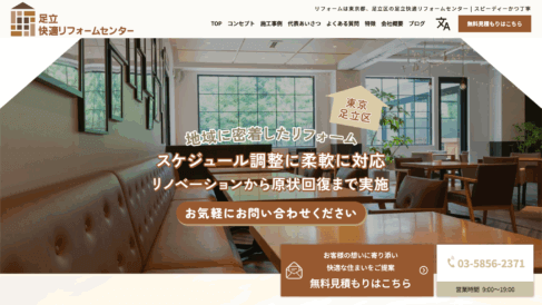 東京都足立区に拠点を構える足立快適リフォームセンターは、葛飾区など周辺エリアにおいて地域密着型のリフォームサービスを提供しています。水回り設備工事、内装工事、クロス張替え、外壁塗装、バリアフリーリフォーム、リノベーション、原状回復といった多彩な施工メニューを取り揃え、住宅から店舗、オフィスまであらゆる建物のニーズに応えています。