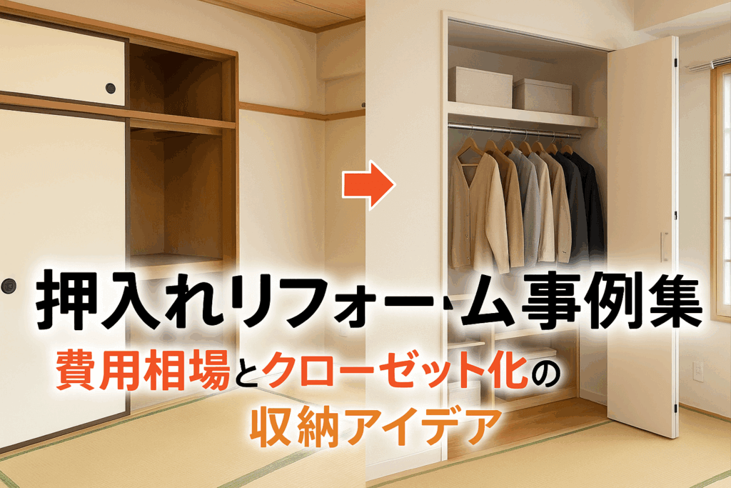 | 古い押入れを活用したリフォーム事例は? | 和室押入れを大型L字型クローゼットにリノベーションした例や、パイプや可動棚を活用した収納性向上の事例があります。 |